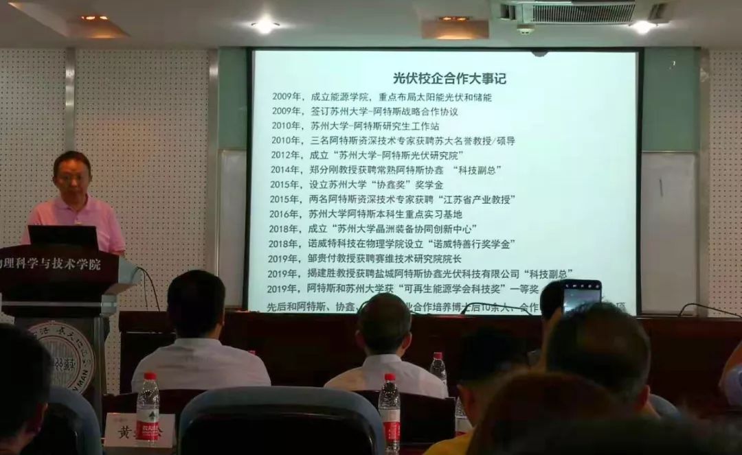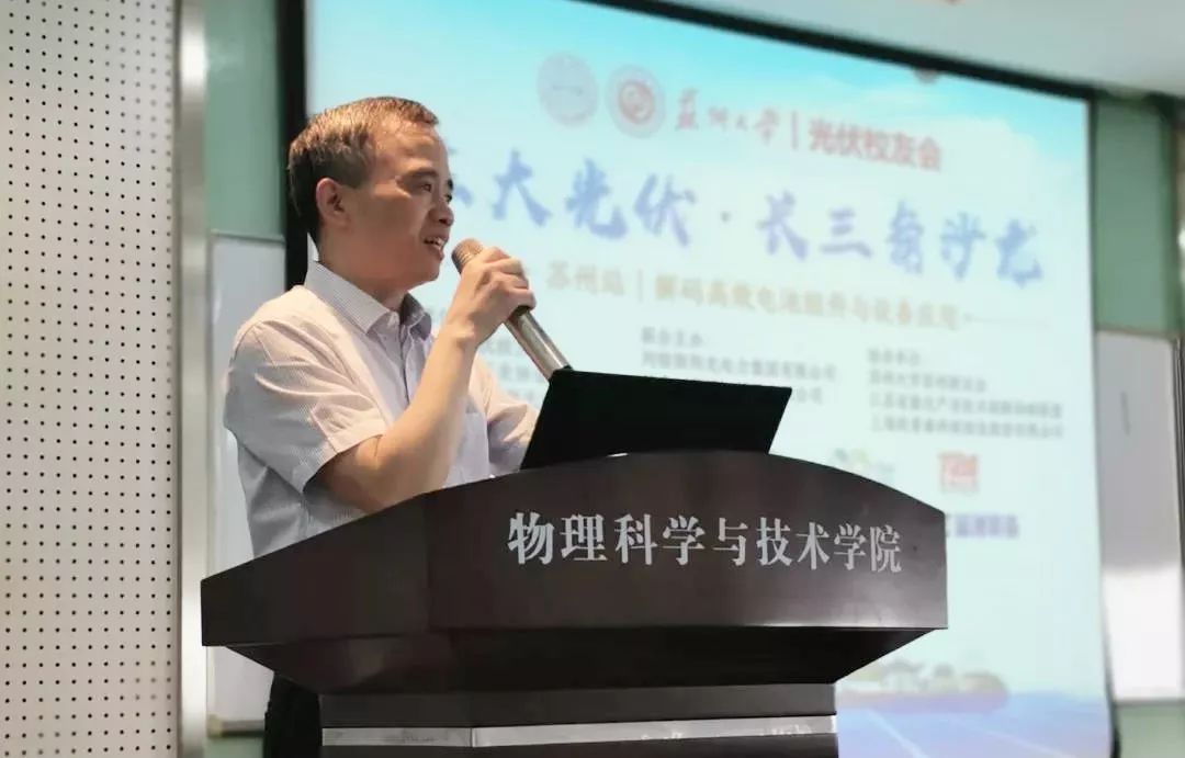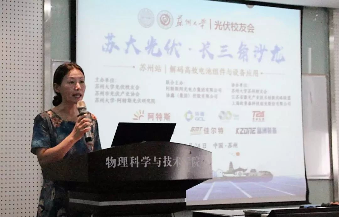 8月24日,苏州大学天赐庄校区物理科技楼409会议室座无虚席,由苏州大学光伏校友会、苏州市光伏产业协会、苏州大学-阿特斯光伏研究院主办,阿特斯阳光电力集团、协鑫集团联合主办,苏州大学苏州校友会、江苏省激光产业技术创新战略联盟、上海欧普泰科技创业股份有限公司协办的苏大光伏 · 长三角沙龙(苏州站)论坛在这里成功举办。
