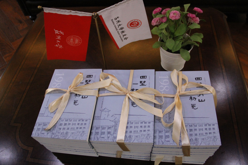 校友代表朱亚辉、顾强、王斌介绍了此次捐赠书籍《回望青山一如初见》的初心和希冀,表达了浓浓的同学情、师生情和对母校的感激之情,希望以这种回归文学的方式,凸显苏大中文系学子特有的浪漫主义诗意底蕴,更好地诠释“芳华三十年,青春再出发”这个毕业三十年聚会活动主题的深层次内涵。