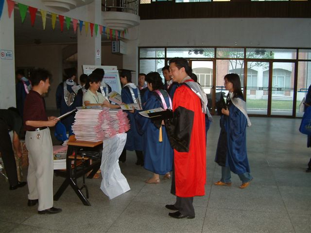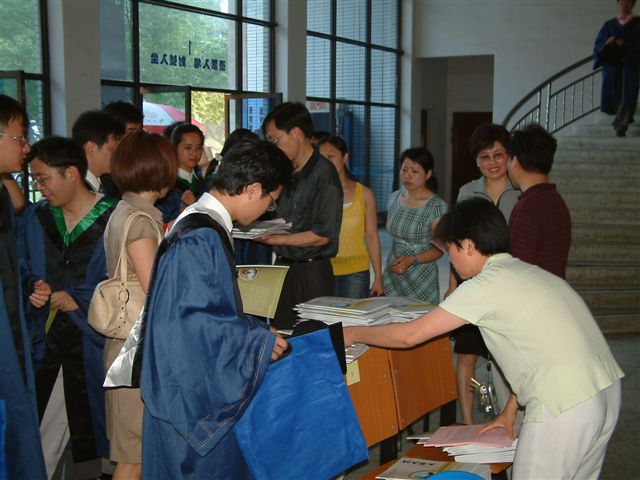 在存菊堂对面,一条红色的宣传条幅映入眼帘:“苏州大学校友会祝全体毕业生一帆风顺,前程似锦,事业辉煌!”温馨的祝福温暖每一个学子的心房,伴随着同学们踏上新的征程。校友总会秘书处的工作人员将刊物和《苏州大学校友会致2005届全体毕业生的一封信》送到每位毕业生的手中,祝贺他们顺利完成学业,并欢迎加入当地校友会组织,营造属于自己的家园。两次毕业典礼共计赠送刊物2000余册,受到了毕业生和老师们的一致好评。