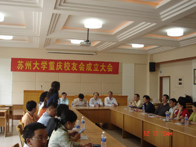 5月12日上午10:30,苏州大学重庆校友会成立大会在西南大学纺织服装学院会议室隆重举行,来自重庆市各地近40位校友出席了会议。校党委副书记兼副校长、校友总会副会长兼秘书长夏东民教授,原材料工程学院院长徐回祥教授,发展委员会办公室副主任陈向民应邀到会祝贺并向校友们赠送了《苏大校友》刊物。