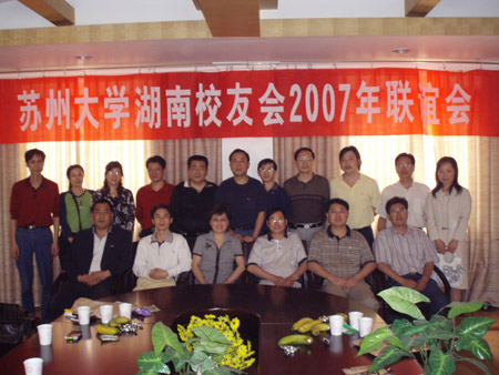 2007年5月13日,来自湖南全省各地市分会的17名校友代表聚集在长沙市南铁宾馆会议厅,举行了2007年度联谊会。 苏州大学校友总会副秘书长、发展委员会办公室主任杭晓平教授亲临大会指导。