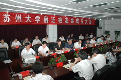 宿迁市政府办公室副主任刘立新校友主持了会议。宿迁市政协原副主席、市教育督导室主任贡光治校友介绍了宿迁校友会的筹备情况。宿迁市人事局局长龚和校友宣读了宿迁校友会章程。