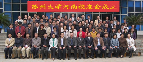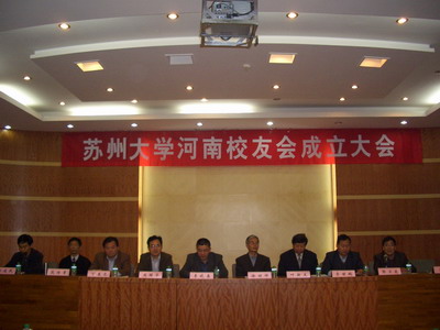 2009年4月18日上午,我校第45家地方校友会――河南校友会成立大会在河南工程学院学术报告厅隆重举行。苏州大学校友总会副秘书长、发展办副主任丁春忠,金螳螂建筑与城市环境学院党委副书记周国华,发展办顾问徐回祥,发展办联络部部长张洁等一行应邀出席会议。
