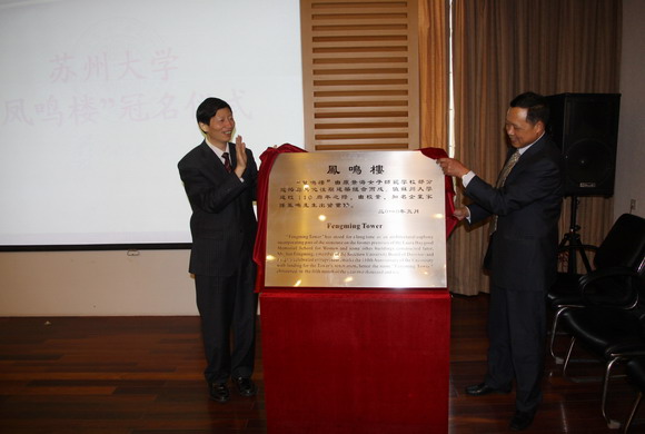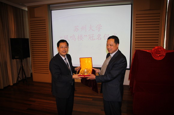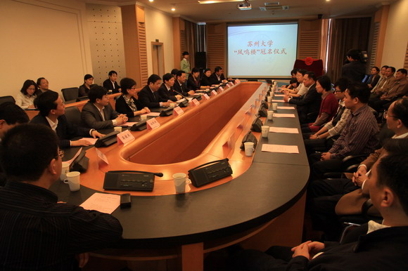 在喜迎我校110周年校庆之际,我校董事会副董事长、无锡震达机电有限公司董事长、总经理孙凤鸣先生向我校慷慨捐资 500万元,用于资助校庆及学校建设与发展。为表彰孙凤鸣先生的善举,我校将发展办大楼冠名“凤鸣楼”。5月11日上午,“凤鸣楼”冠名仪式在校本部红楼会议室举行,孙凤鸣及其家人、友人一行出席冠名仪式,校长朱秀林、副校长陈一星以及相关职能部门负责人参加了仪式。会议由校党委副书记、副校长江涌主持。