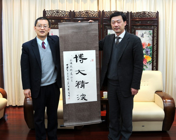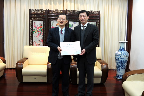 2011年3月5日上午,美籍华人科学家程正迪先生委托美国AKRON大学王波杰博士向我校博物馆捐赠了著名书画家钱君匋的书法立轴一幅。田晓明副校长代表学校在博物馆接受了捐赠,并给捐赠者颁发了捐赠证书和纪念品。