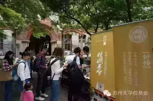 校友返校日系列活动之校园寻梦,选取了校园十大经典美景。校友们跟随着手中精美的折页指引,故地重游,寻找记忆中的菁菁校园。昔日同窗共读的老教室仍有年轻的身影在埋首疾书,曾携着书本漫步欣赏的小桥流水依然潺潺涓涓,与好友在漫天星月之下畅谈理想的大草坪青草依依如昨。斑驳古朴的东吴门、落英缤纷的尊师轩、磅礴大气的钟楼……一草一木皆似有情,一砖一瓦全如有意。