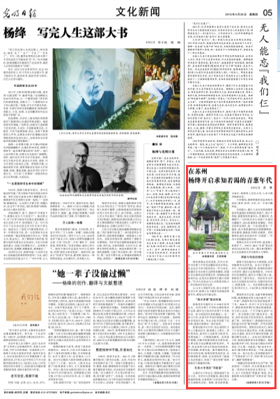 闻知杨绛去世的消息,苏州大学、苏州市第十中学校友圈纷纷发言悼念,纪念这位可亲可敬的校友。“作为校友,能漫步在先生曾打过排球的操场,徘徊在先生徜徉过的葑溪水岸,再细细品读她的作品,这是先生留给我们最大的财富。”苏州大学政治与公共管理学院大二学生陈玟妤告诉记者。