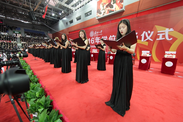 校学位评定委员会副主席、副校长蒋星红教授宣读了校学位评定委员会关于学士、硕士、博士学位授予决定。2016年苏州大学获得学位的共有本科毕业生5004位,硕士毕业生3194位,博士毕业生327位。