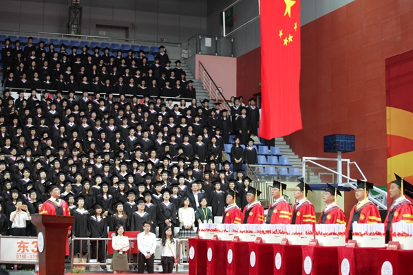 全体毕业生齐唱毕业歌,主持人宣布学位授予仪式礼毕。