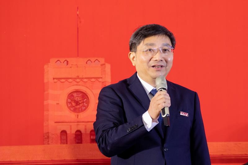 在热烈的掌声中,苏州大学党委书记江涌、校长熊思东,党委副书记邓敏、刘标,副校长杨一心,纪委书记、监察专员芮国强,副校长陈卫昌,总会计师周高还组成一支“天团”队伍,介绍了各自的分管工作,并为新生们送上美好祝愿,期待同学们在大学的学习生活中不负光阴、不负韶华。