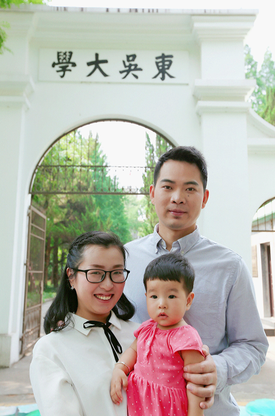 他们的故事:“我(苏大王健法学院2010届国际法硕士研究生毕业)和妻子刘倩(苏大法学院 2011届诉讼法硕士毕业生)于2013年结婚,现在宝宝已经2岁半了。那时的我总在本部图书馆的固定位置看到一张青涩的脸庞,执着又认真;一次食堂的偶遇认识了彼此,原来我是她的学长,虽然我们没有一起上过一次课,但缘分让我们走到了一起。2009年相知于中西合璧的王健法学院大楼,2010年相爱于东吴桥畔。美丽的苏大校园不仅为我们夫妻二人提供了学习知识的平台,更是我们人生成长的重要转折平台。”