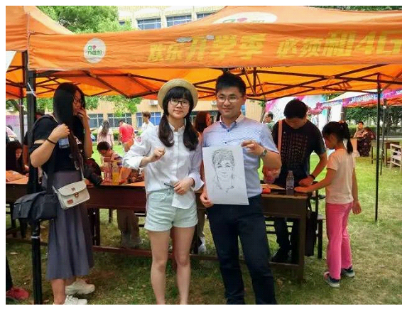 (校友吕加兵(右)与校园小画家)