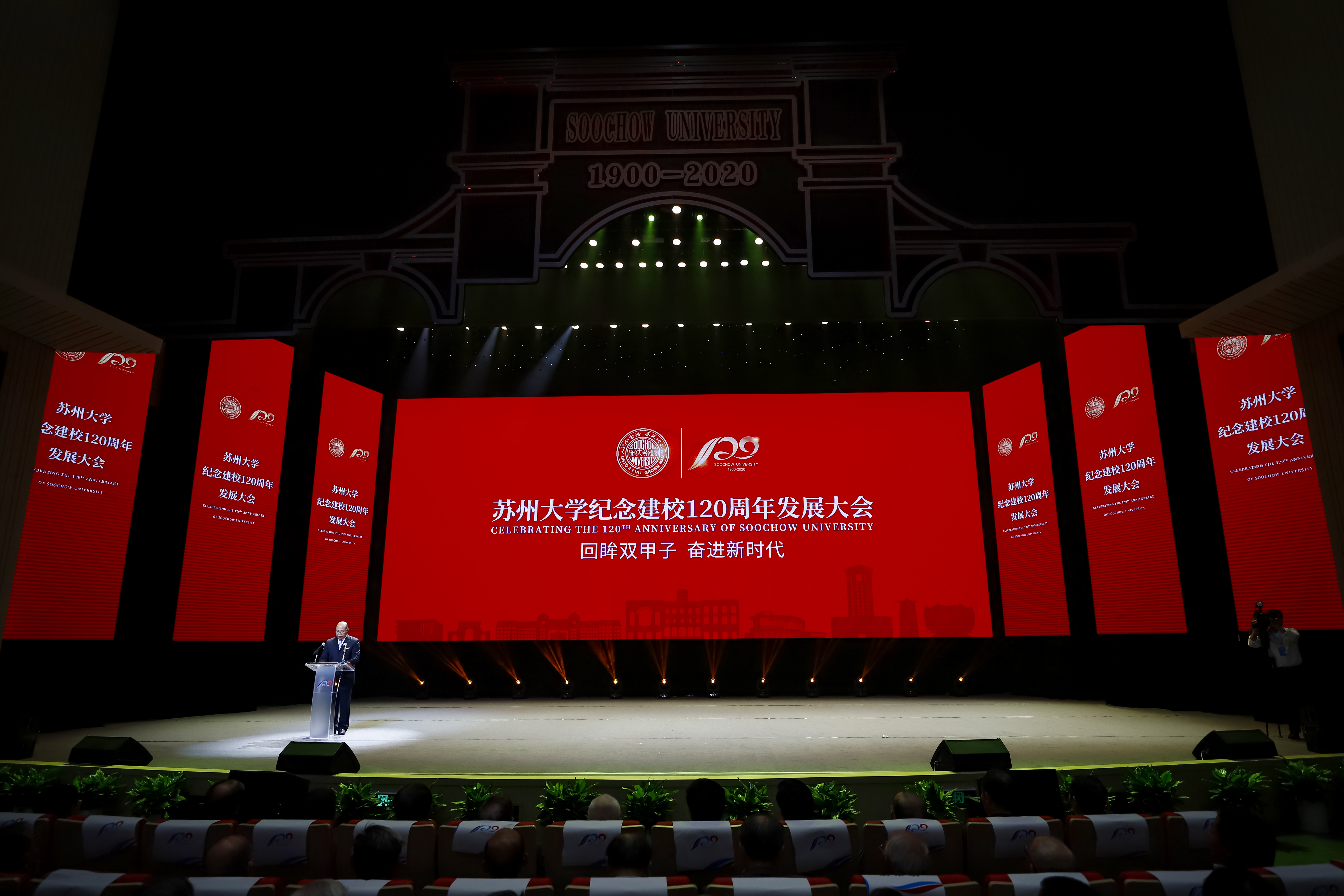 10月18日,中国历史上最悠久的现代高等学府之一苏州大学迎来120岁生日。上午十时,苏州大学纪念建校120周年发展大会在独墅湖校区恩玲艺术中心隆重举行。