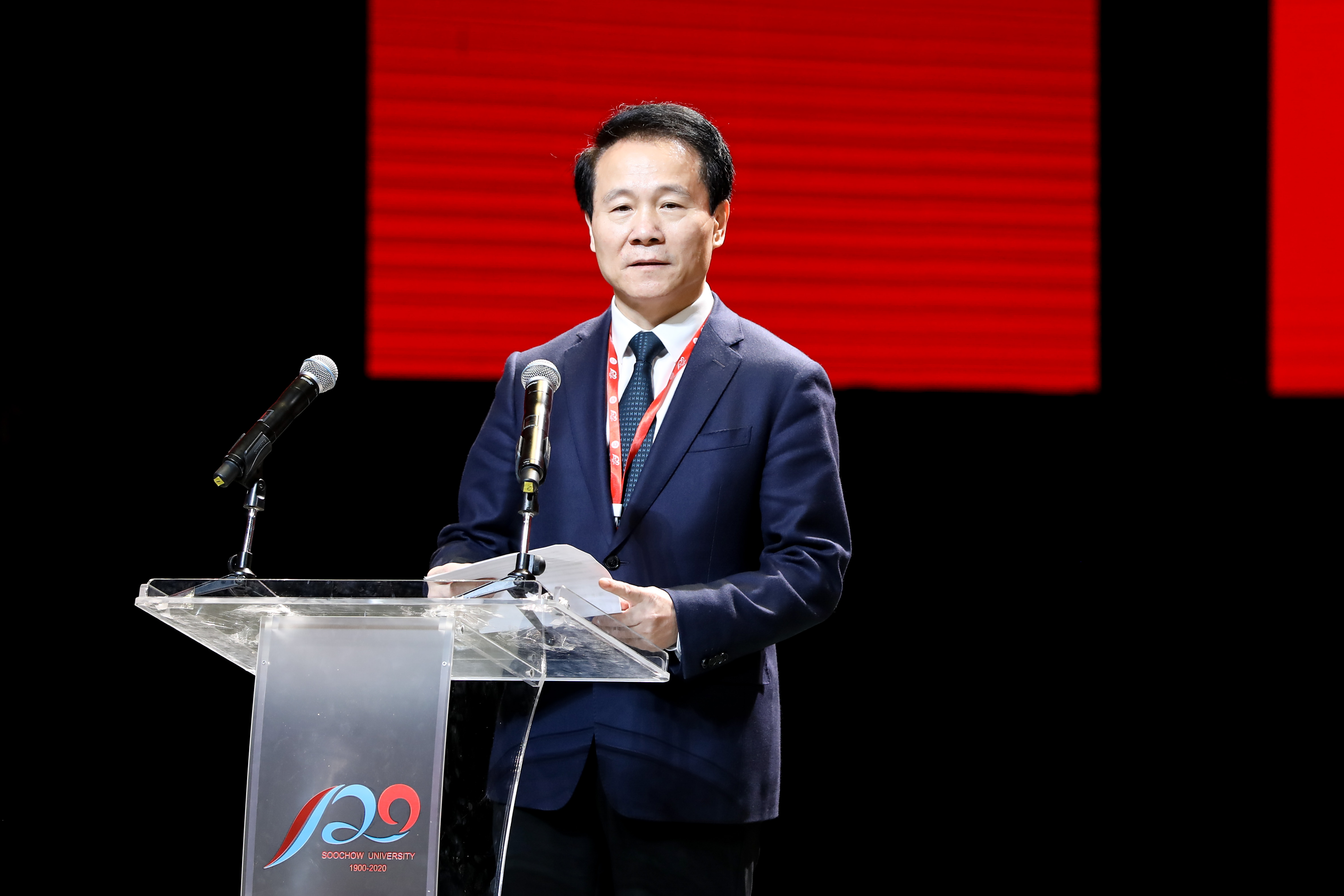 许昆林书记代表市委市政府向苏大致以美好祝愿。他指出,苏州大学始终将自身发展与国家前途、民族命运紧密相连。经过120年的发展,苏州大学在中国高等教育史上留下了浓墨重彩的一笔,为苏州、江苏乃至全国经济社会发展作出了积极贡献。他表示,苏州市将紧紧抓住实施长三角一体化发展等国家战略的重大历史机遇,深入推进“名城名校融合发展”,进一步加大对苏州大学的支持力度,全力支持苏州大学早日建成为具有中国特色、国际影响的一流大学,实现名城名校共融发展,为苏州在社会主义现代化建设新征程中始终走在全省全国前列作出新贡献。