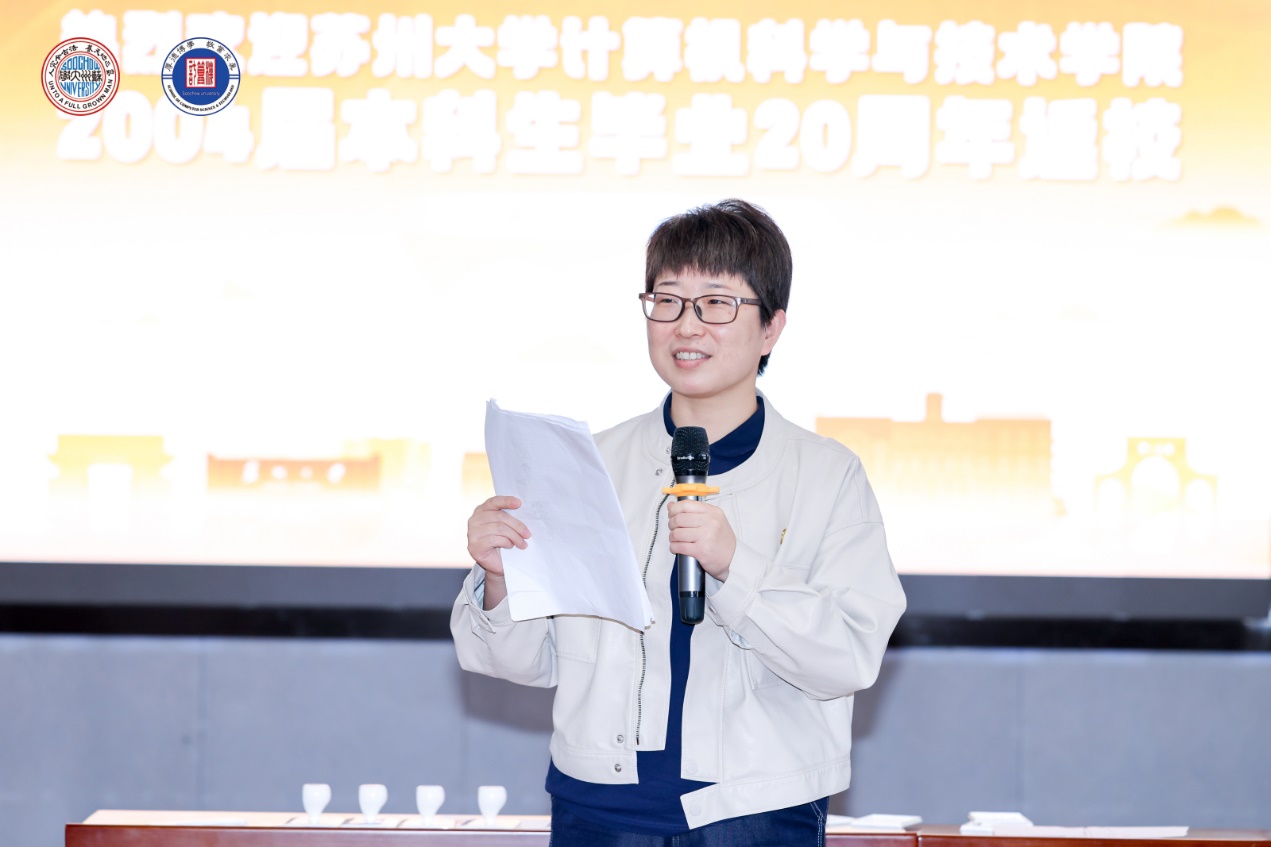 参观结束后,校友们回到理工楼,召开重逢茶话会。茶由04届计算机师范班学生、现软件学院副院长俞莉莹主持。04届学院辅导员、现苏州大学招生就业处副处长张芸和04届学院辅导员李红发表感言。随后,校友们纷纷发言,分享着各自的人生经历和感悟,表达了对母校和老师的感激之情。