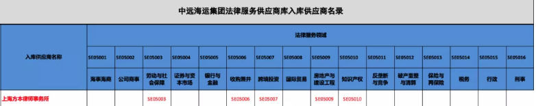 | 中国远洋海运集团法律服务供应商入库供应商名录截图 |